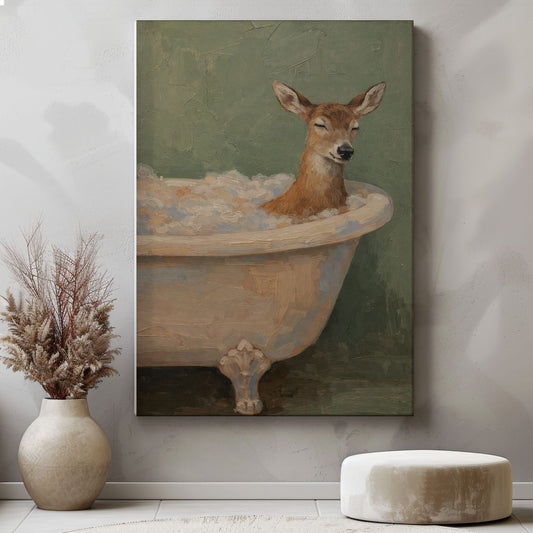 Peaceful Deer Bathing Whimsical Bathroom Wall Art