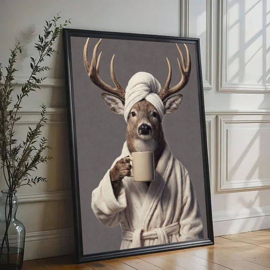 Morning Coffee Deer Bathroom Decor Wall Art