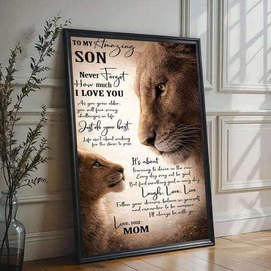 Lion Mom and Son Canvas Print To My Amazing Son Quote Wall Art Poster