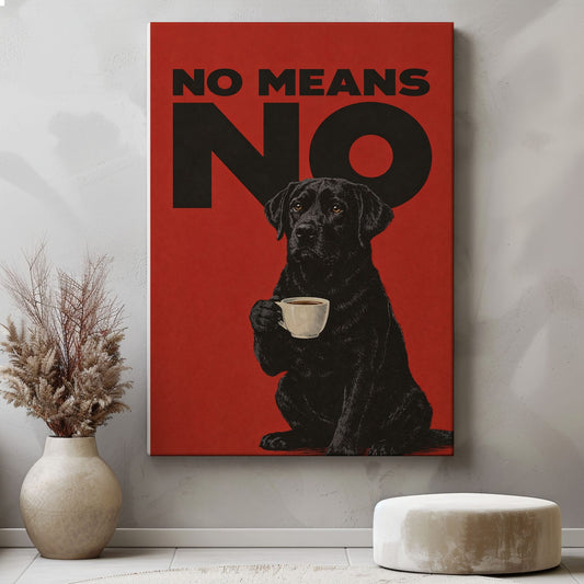 No Means No Canvas Wall Art Black Lab Coffee Quote Poster