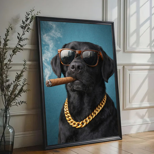 Luxury Dog Portrait Canvas Black Lab Gold Chain Wall Decor