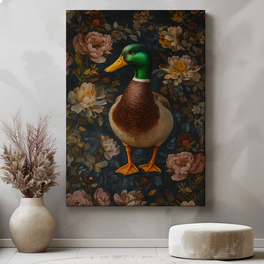 Mallard Duck Canvas Wall Art – Woodland Floral Hunting home decor
