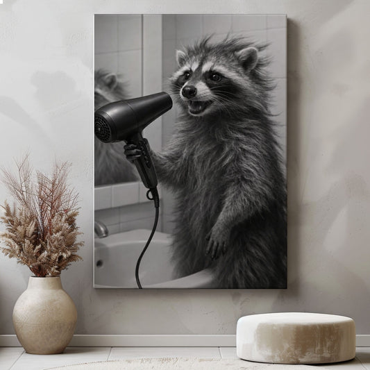 Raccoon Blow Drying Hair Bathroom Wall Art Print