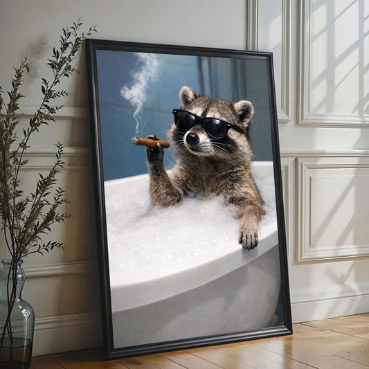 Raccoon Bubble Bath Canvas – Funny Bathroom Wall Art for Hunters