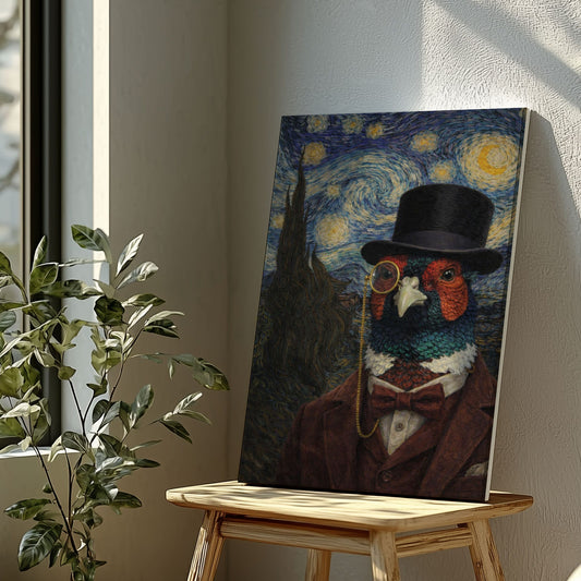 Pheasant Gentleman Starry Night – Vintage Animal Art