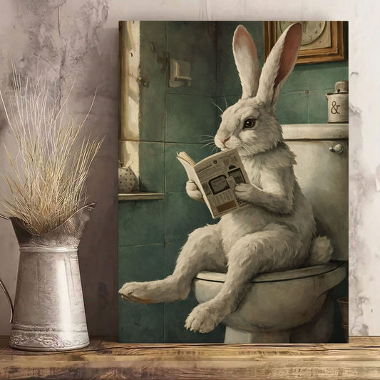 Rabbit Checking Phone Bathroom Humor Animal Art