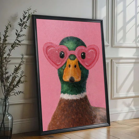 Pink Duck Wall Art Cute Animal Canvas for Bedroom Decor