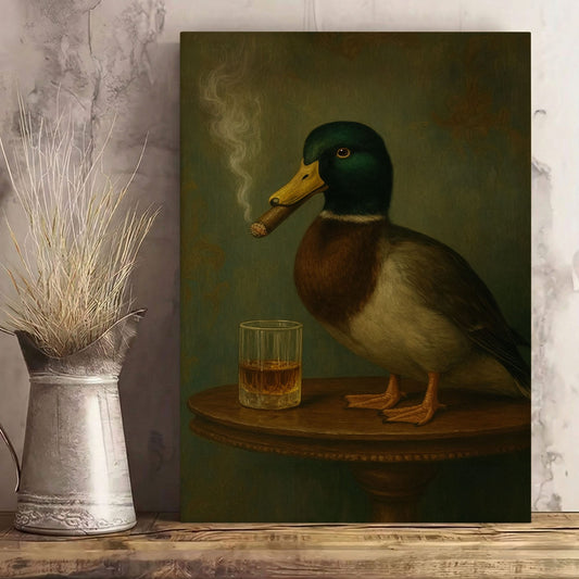 Mallard Duck with Cigar Canvas Print Vintage Bar Wall Art