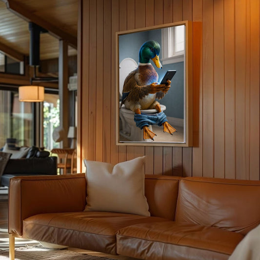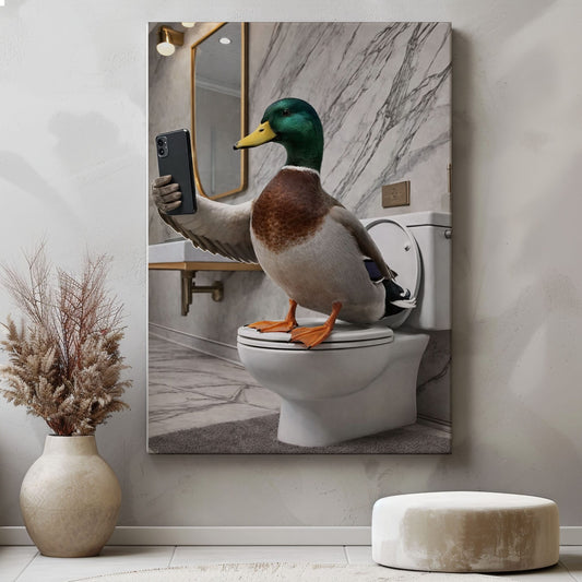 Duck Selfie on Toilet Funny Bathroom Wall Art