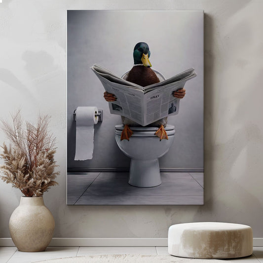 Funny Duck Bathroom Wall Art – Duck Reading Newspaper on Toilet