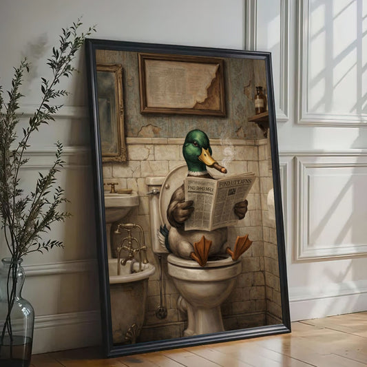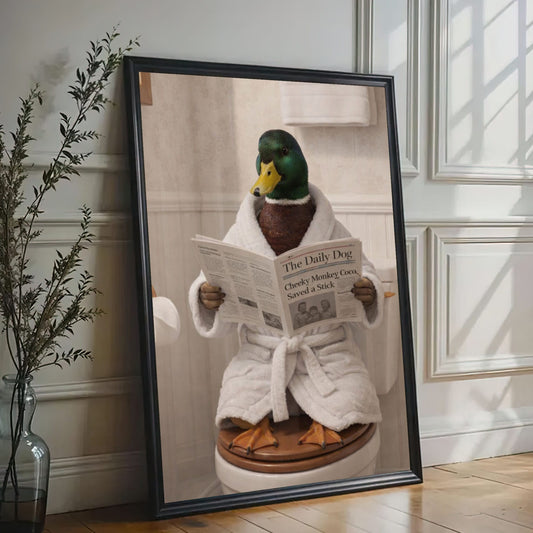 Duck Reading Newspaper on Toilet Bathroom Wall Art