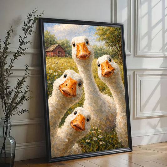 Silly Goose Wall Art Canvas Cute Farm Geese Portrait