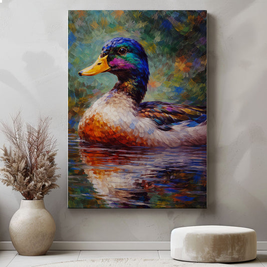 Colorful Mallard Duck Canvas Wall Art Impressionist Wildlife Painting