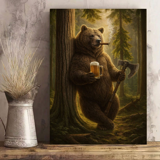 Rustic Bear in Forest Canvas Wall Art