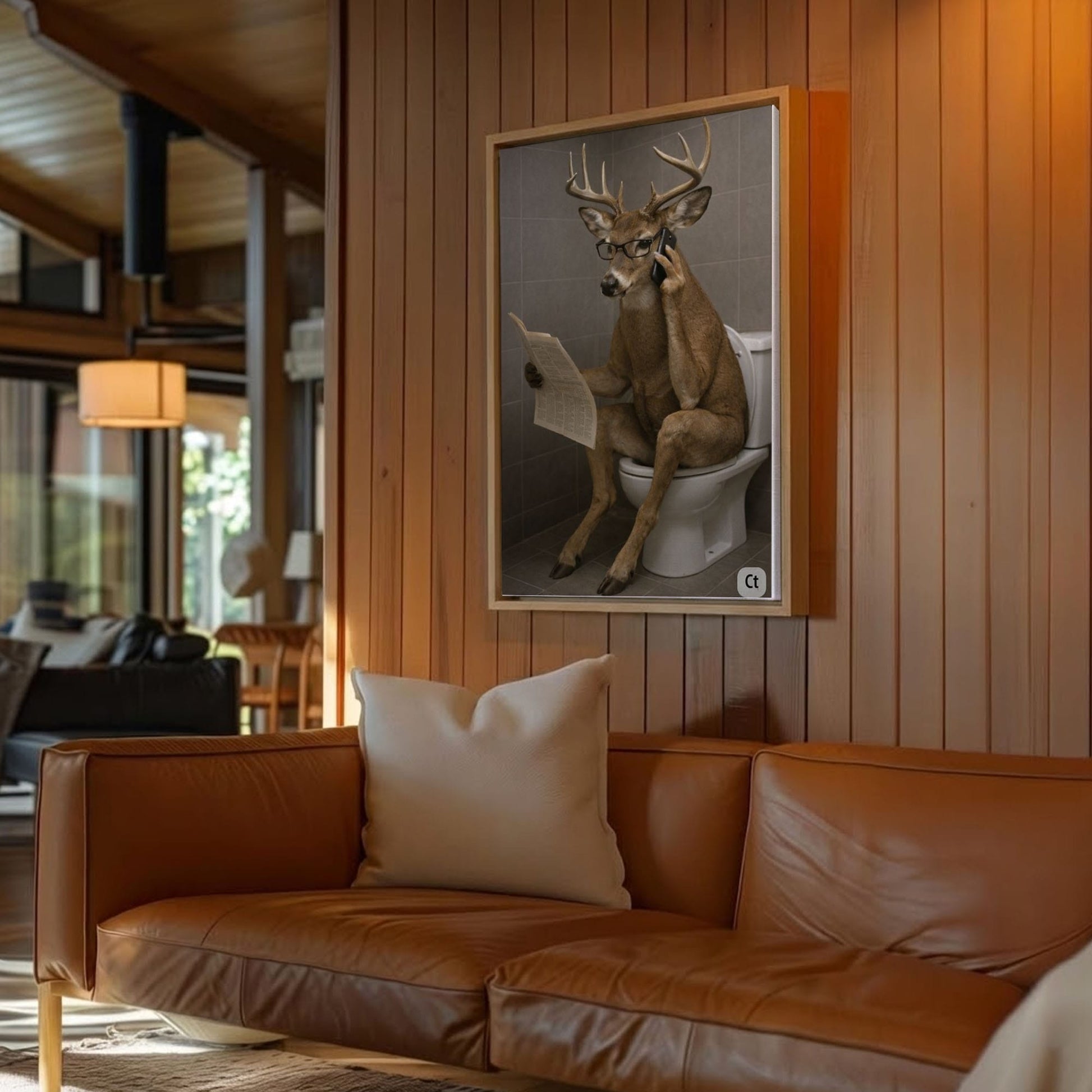 Bathroom Humor Canvas Print Buck on Toilet Taking a Call Wall Decor