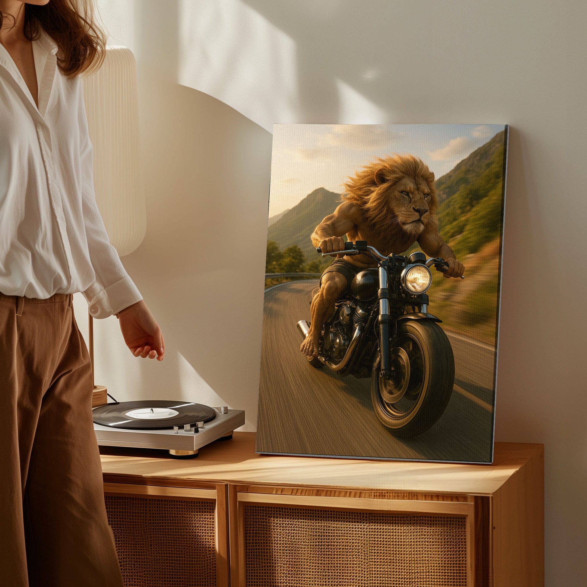 Biker Lion Canvas Badass Motorcycle Animal Wall Art