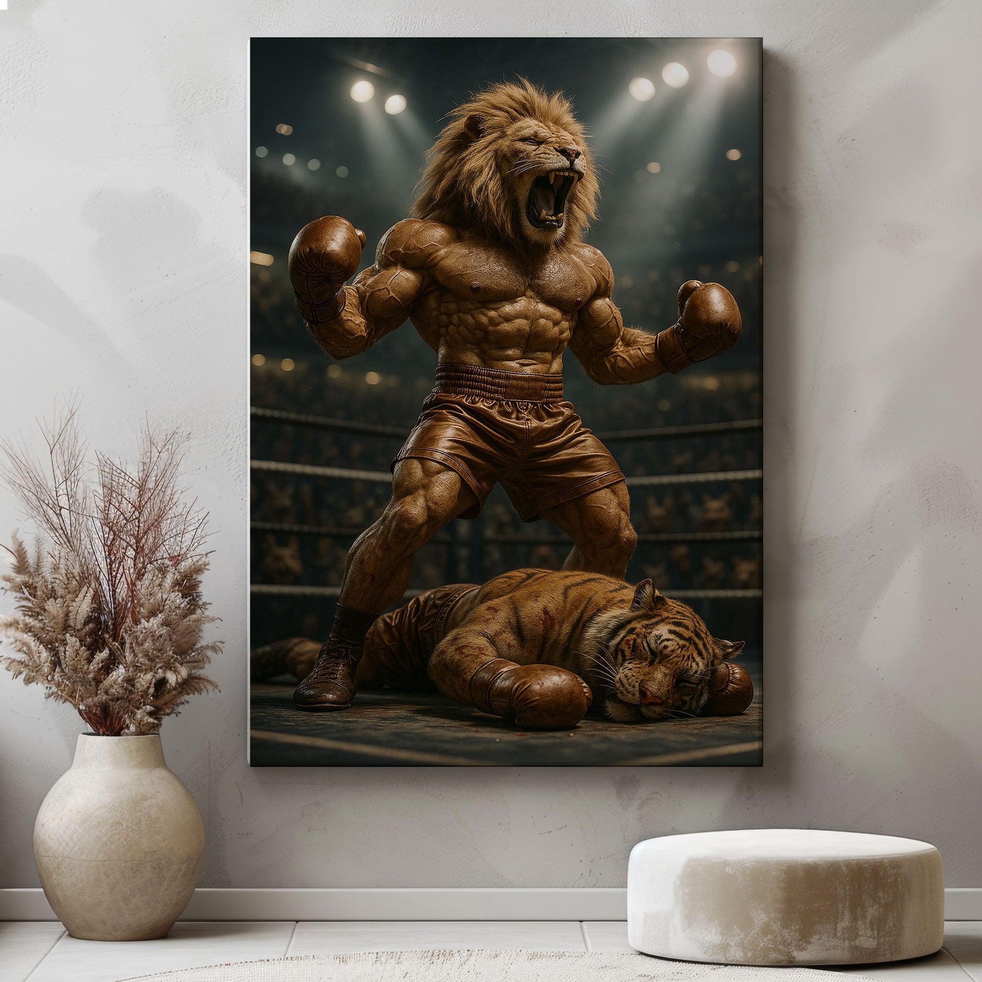 Boxing Lion Champion Canvas Fierce Animal Fighter Wall Art