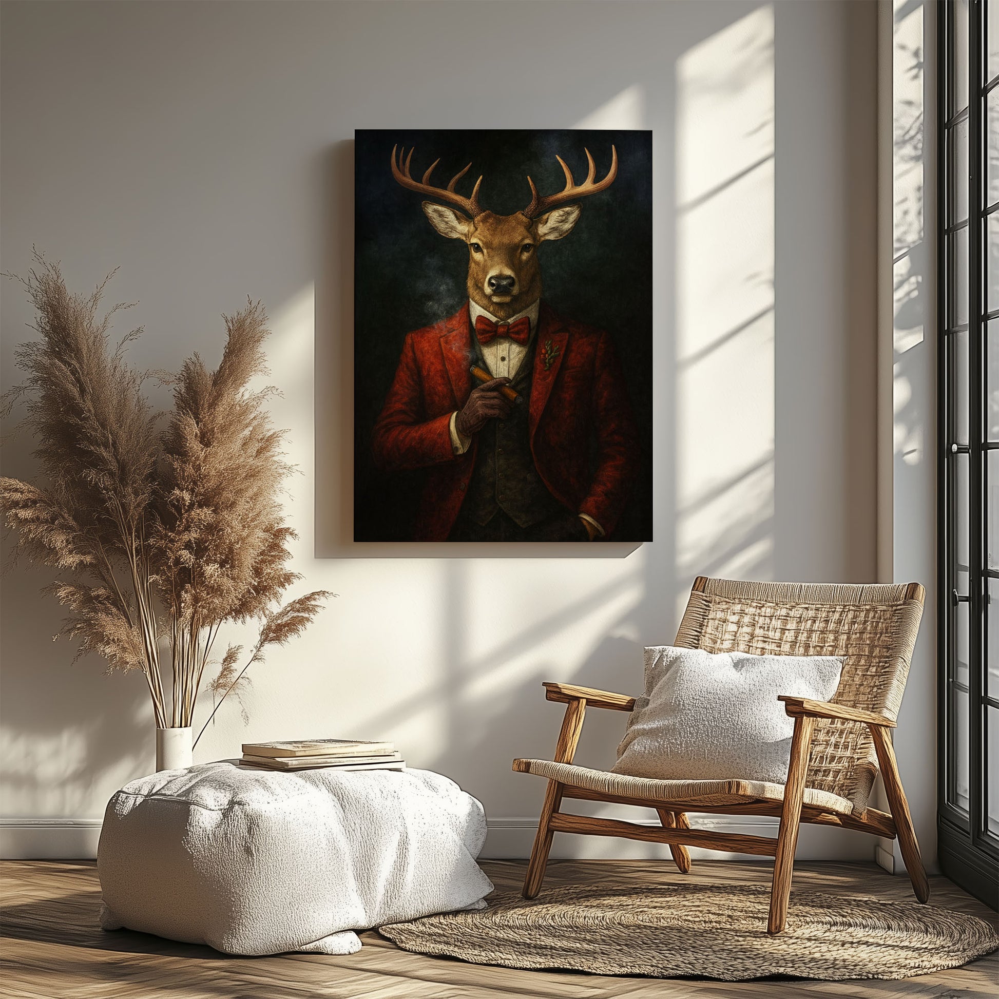 Dapper Deer Smoking Cigar Wall Art Rustic Cabin Decor Hunter Gift