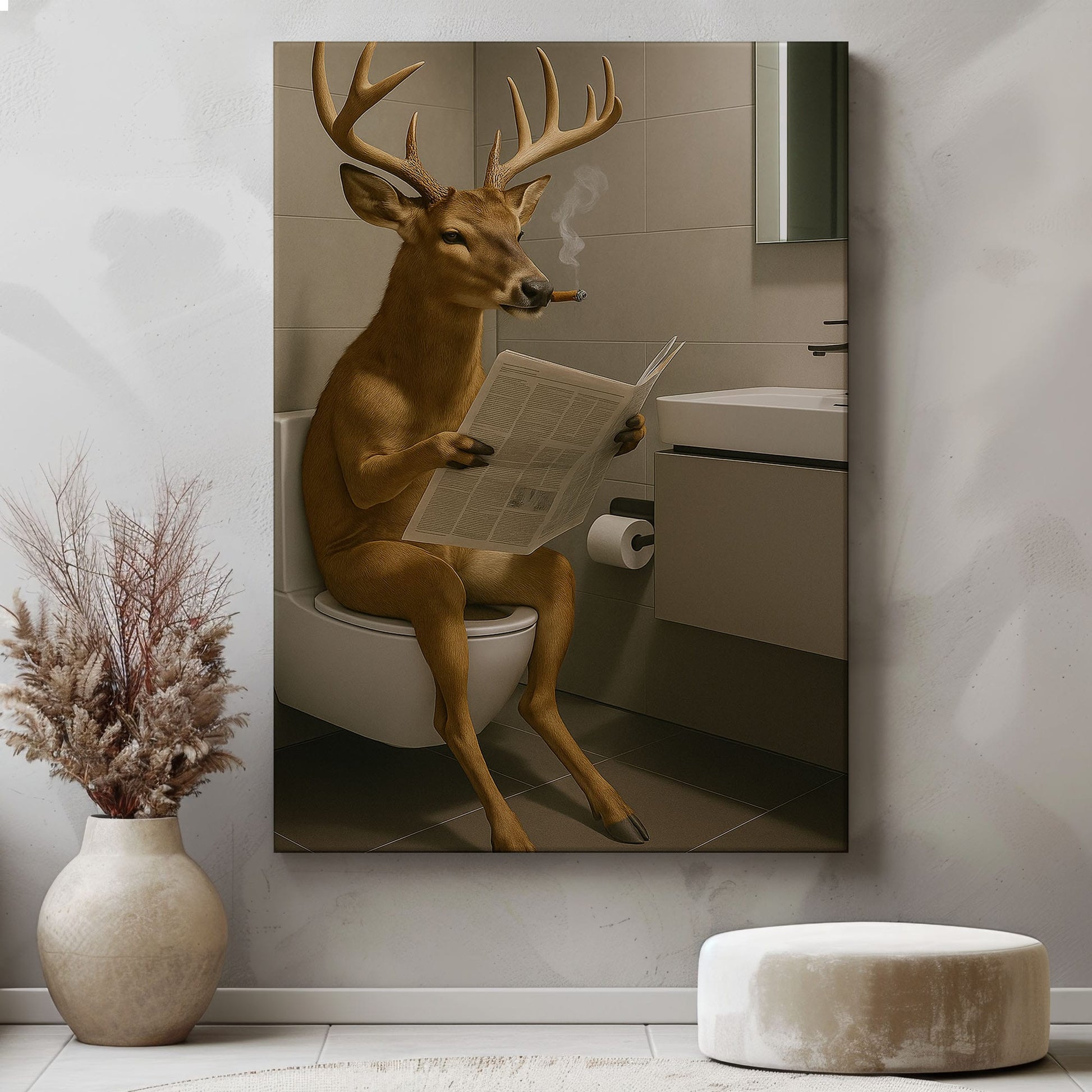 Deer on the Throne – Hilarious Cabin Bathroom Canvas Art