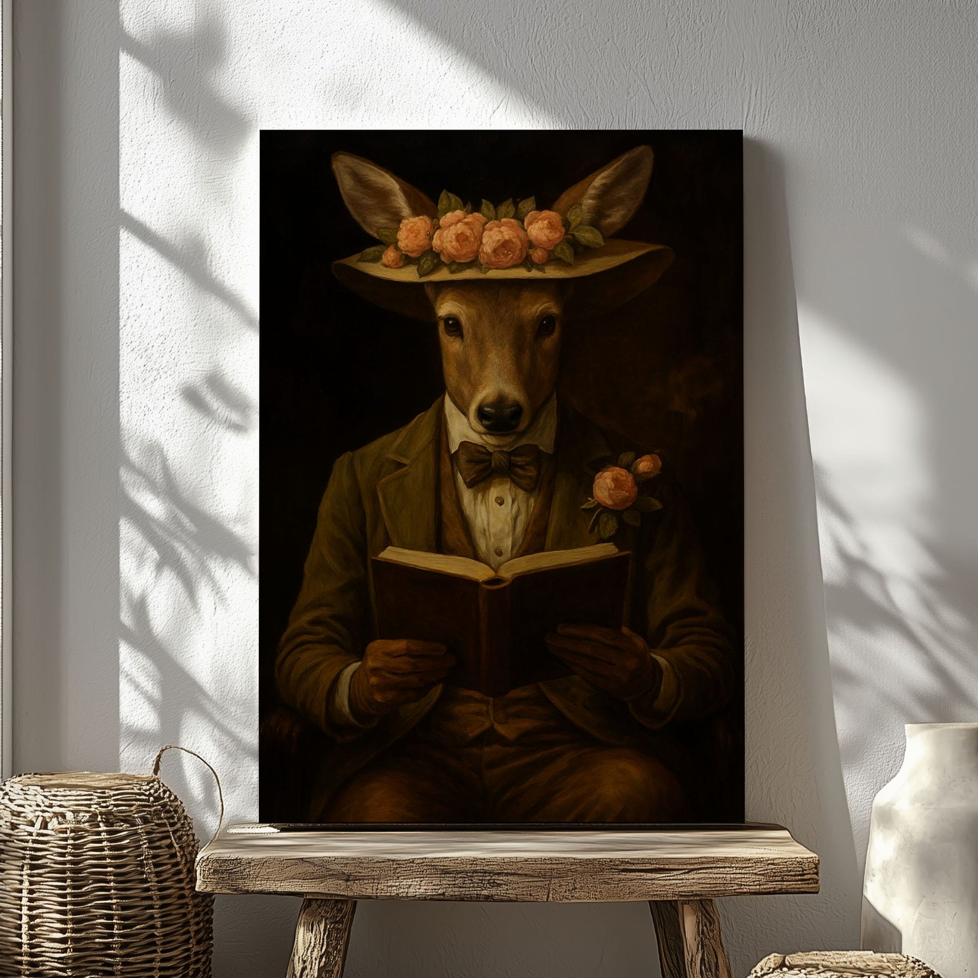 Deer Reading Portrait – Cozy Cabin Wall Art for Woodland Homes
