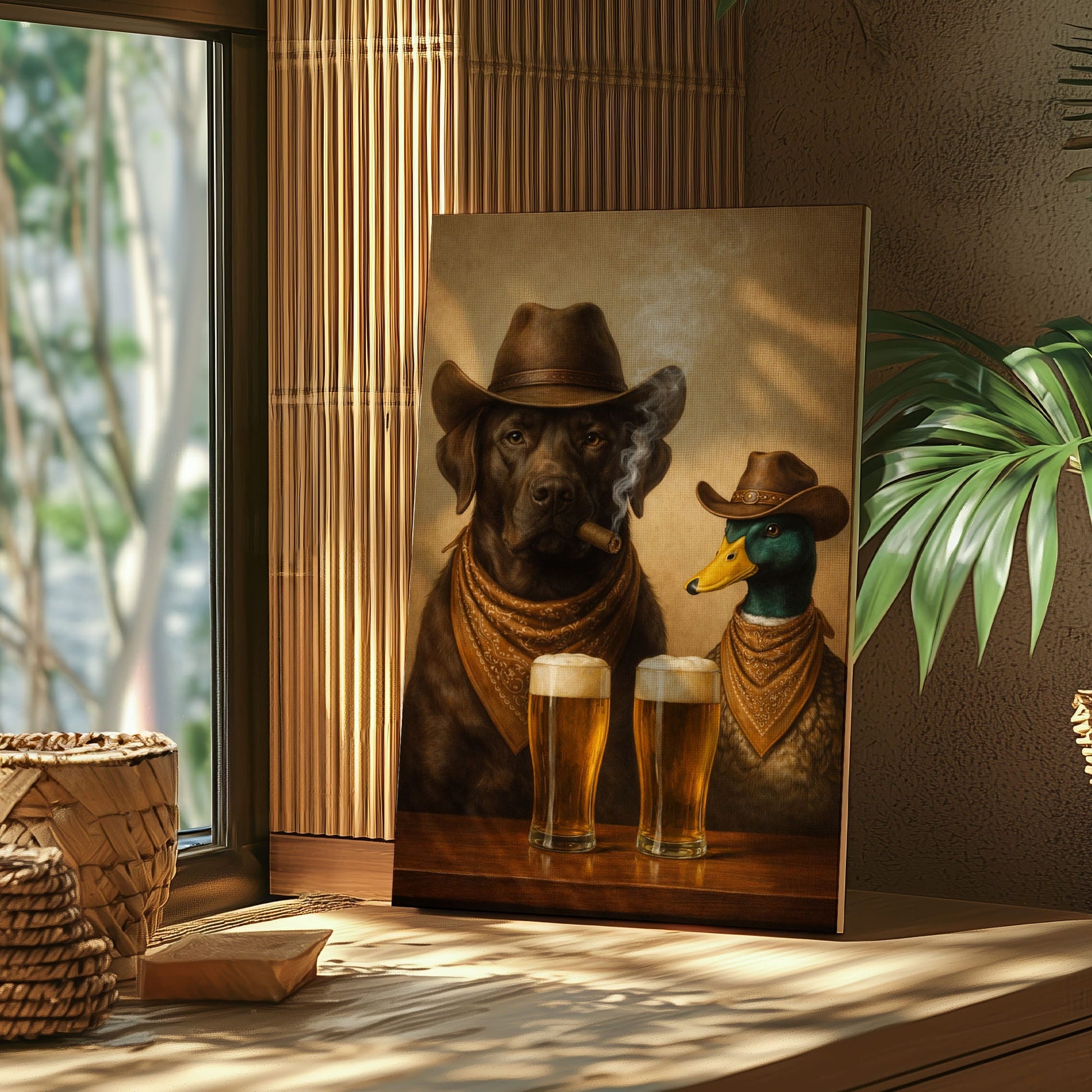 Dog and Duck Smoking Cigar Cold Beer Wall Art Gift for Hunters Cabin Decor (Copy)