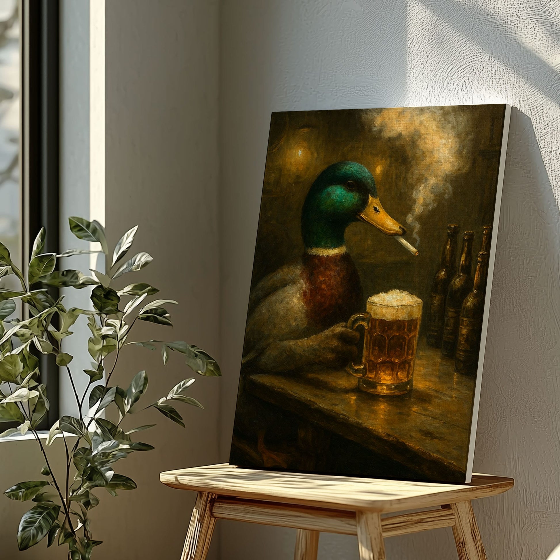 Duck  Mallard Drinking Beer Cabin Wall Art Canvas