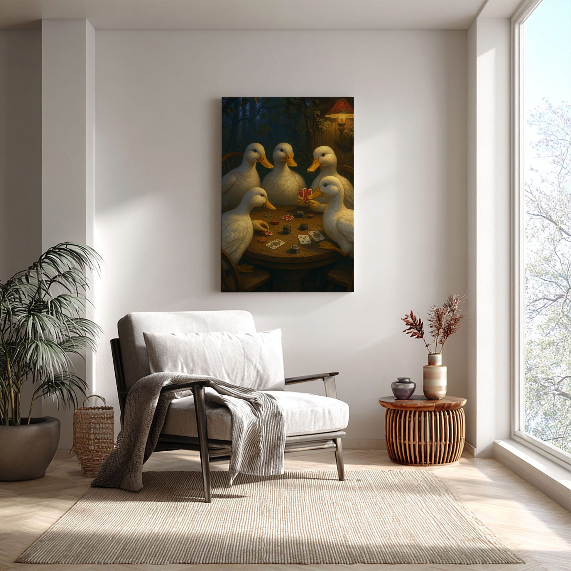 Duck Playing Cards Painting Canvas Funny Poker Ducks Wall Art