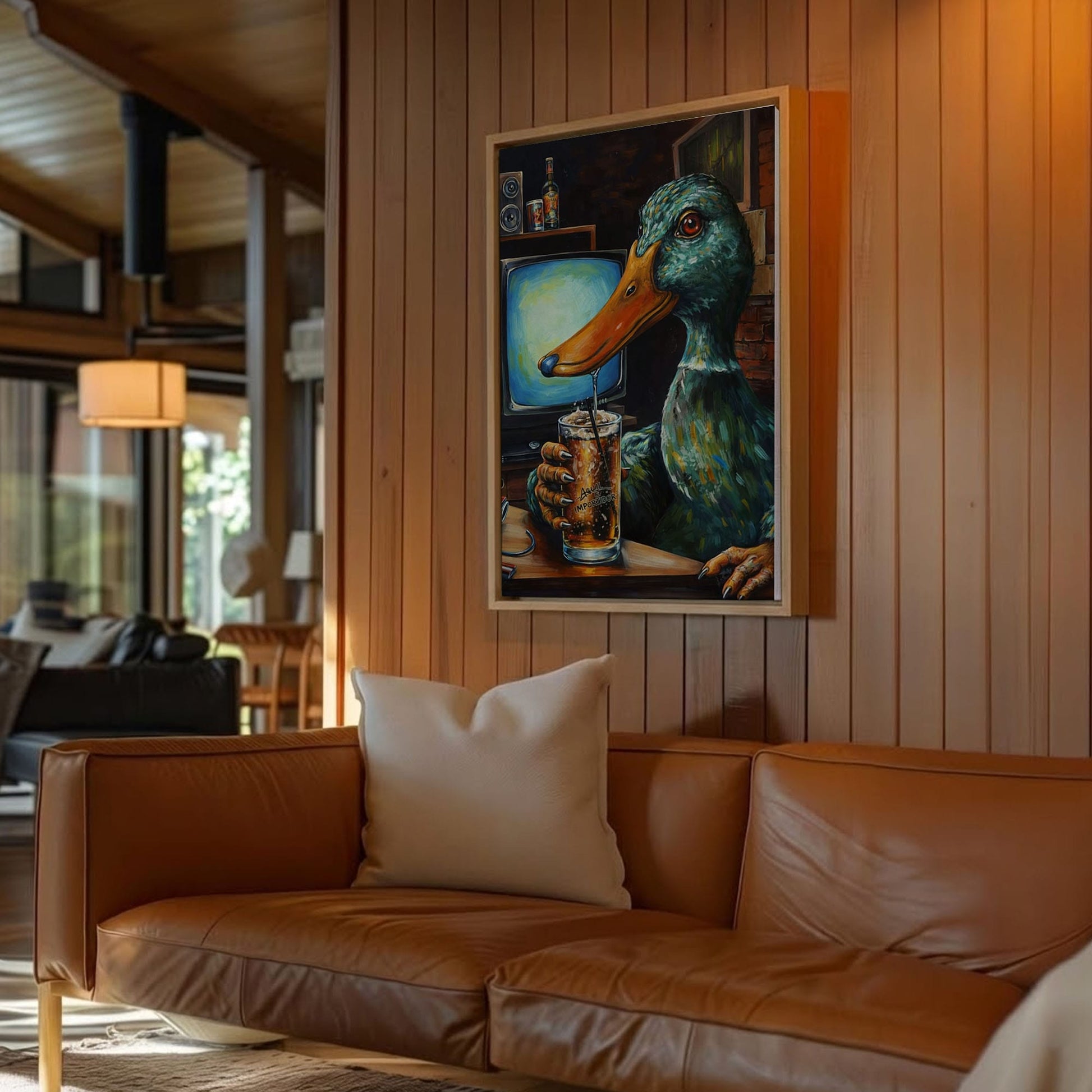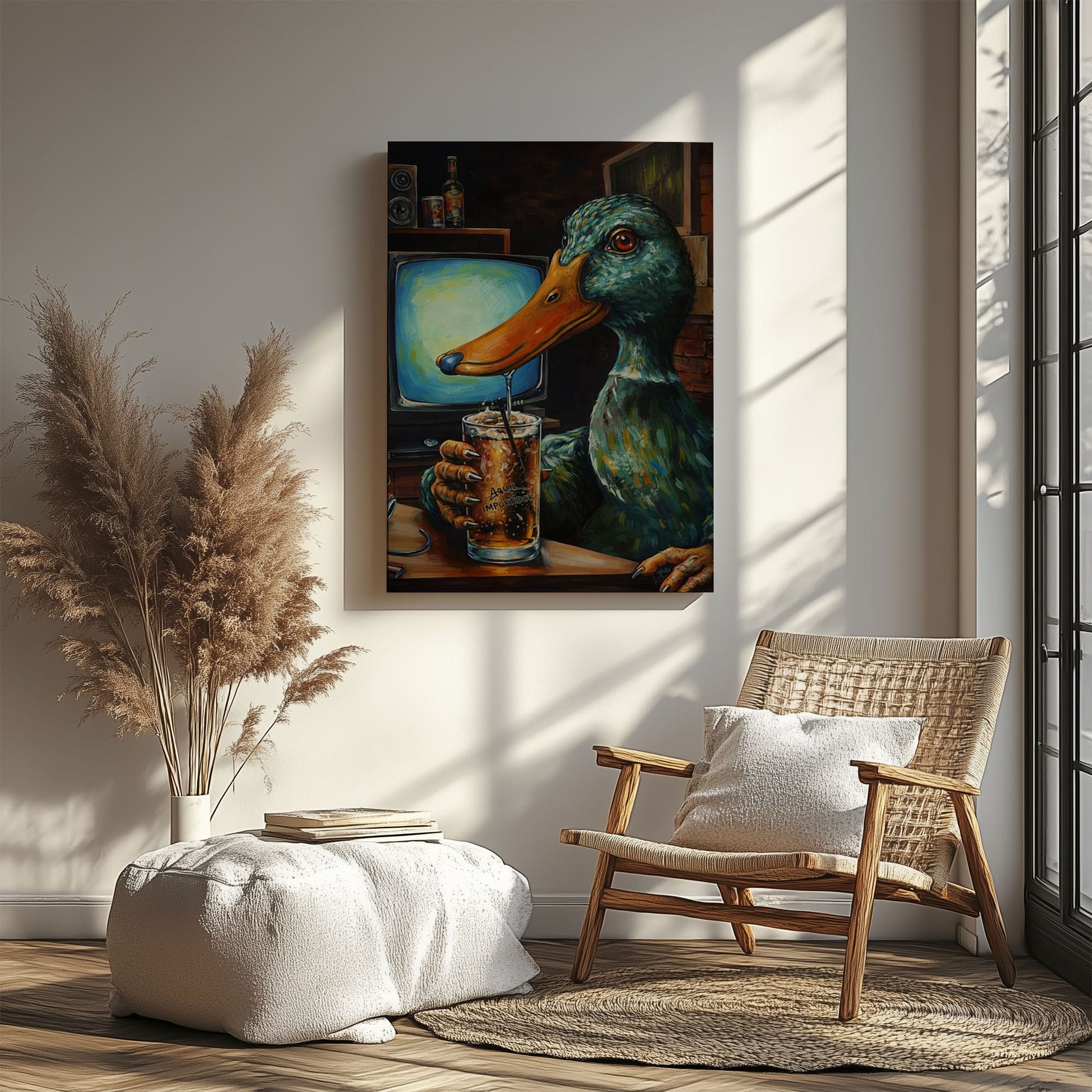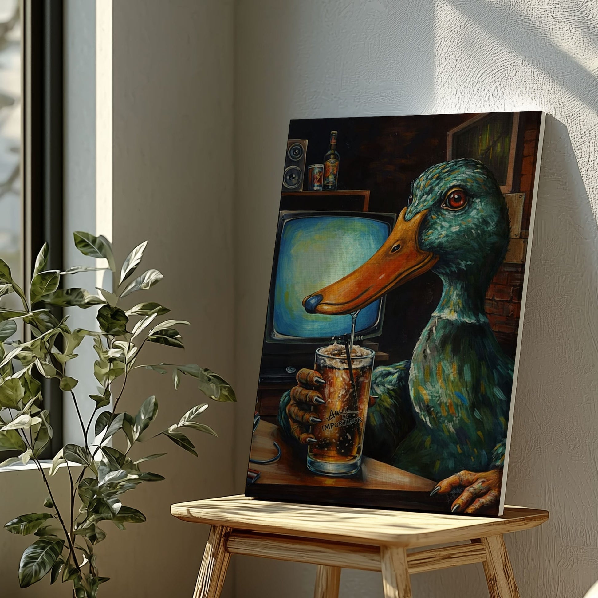 Funny Duck Drinking Beer Canvas Wall Ar Gift for Hunters Cabin Decor