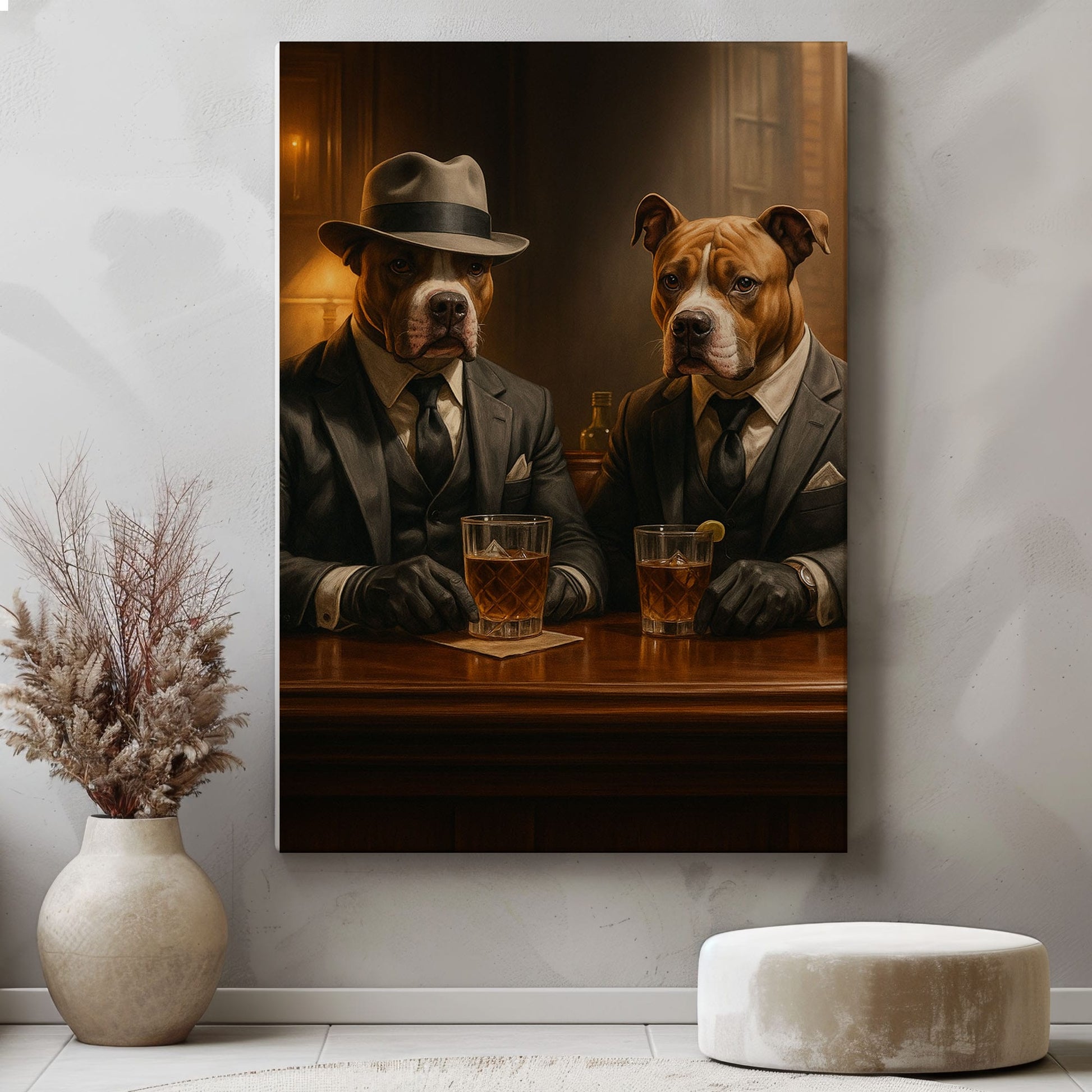 Gangster Bulldogs Canvas – Perfect Gift for Whiskey Lover