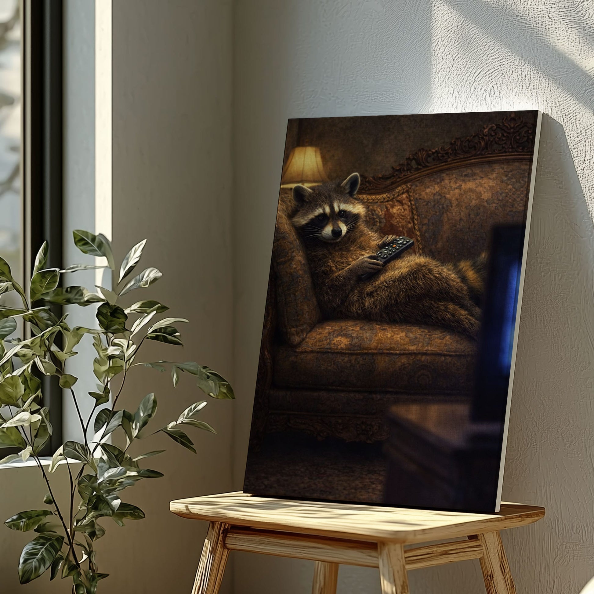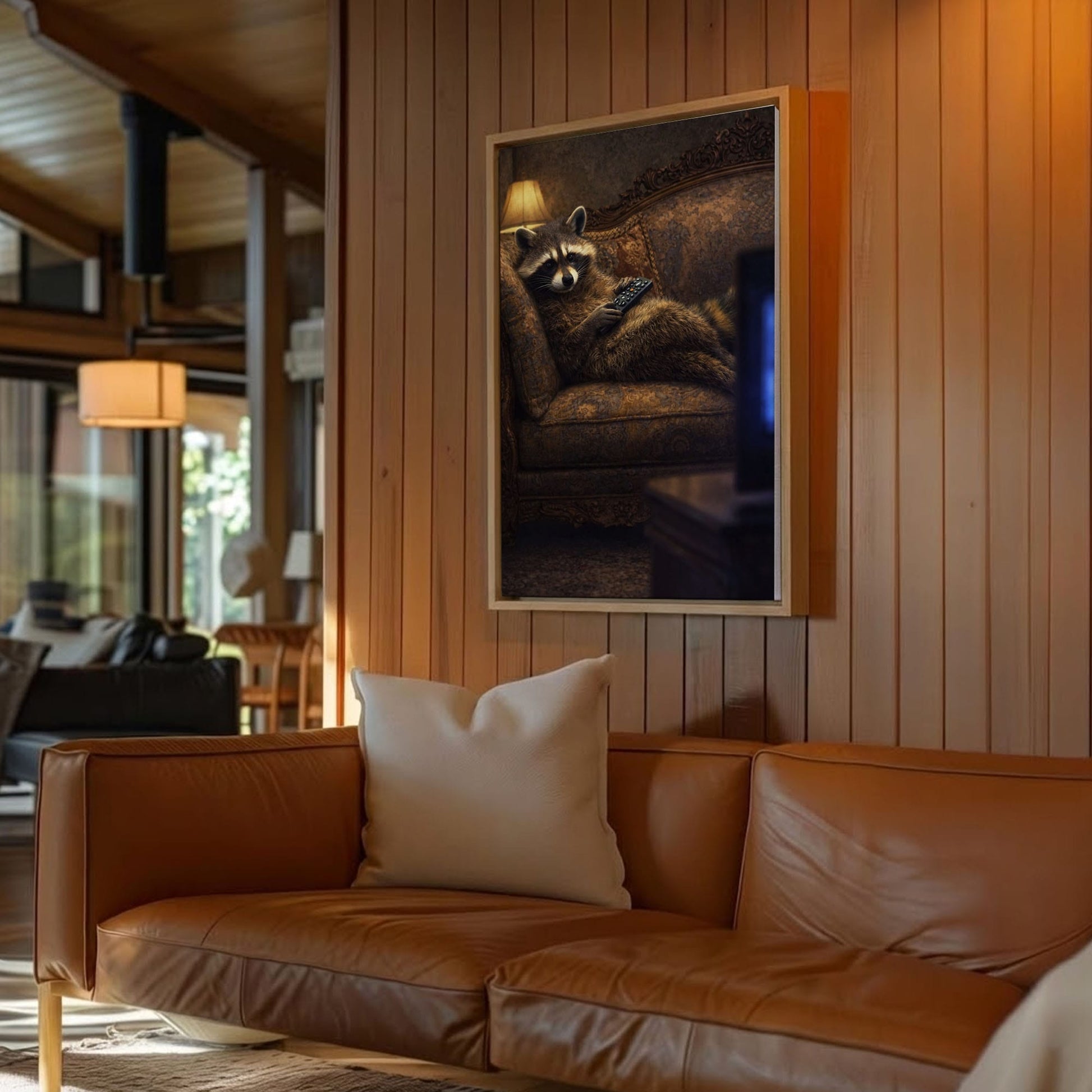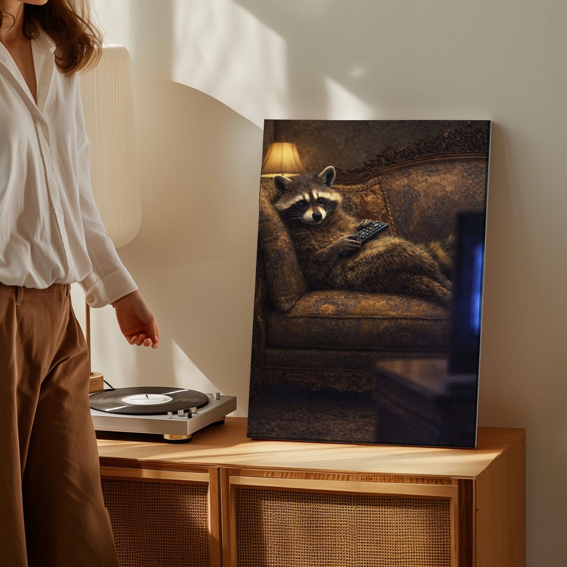 Lazy Raccoon Couch Night Wall Art Gift for Hunters Cabin Decor