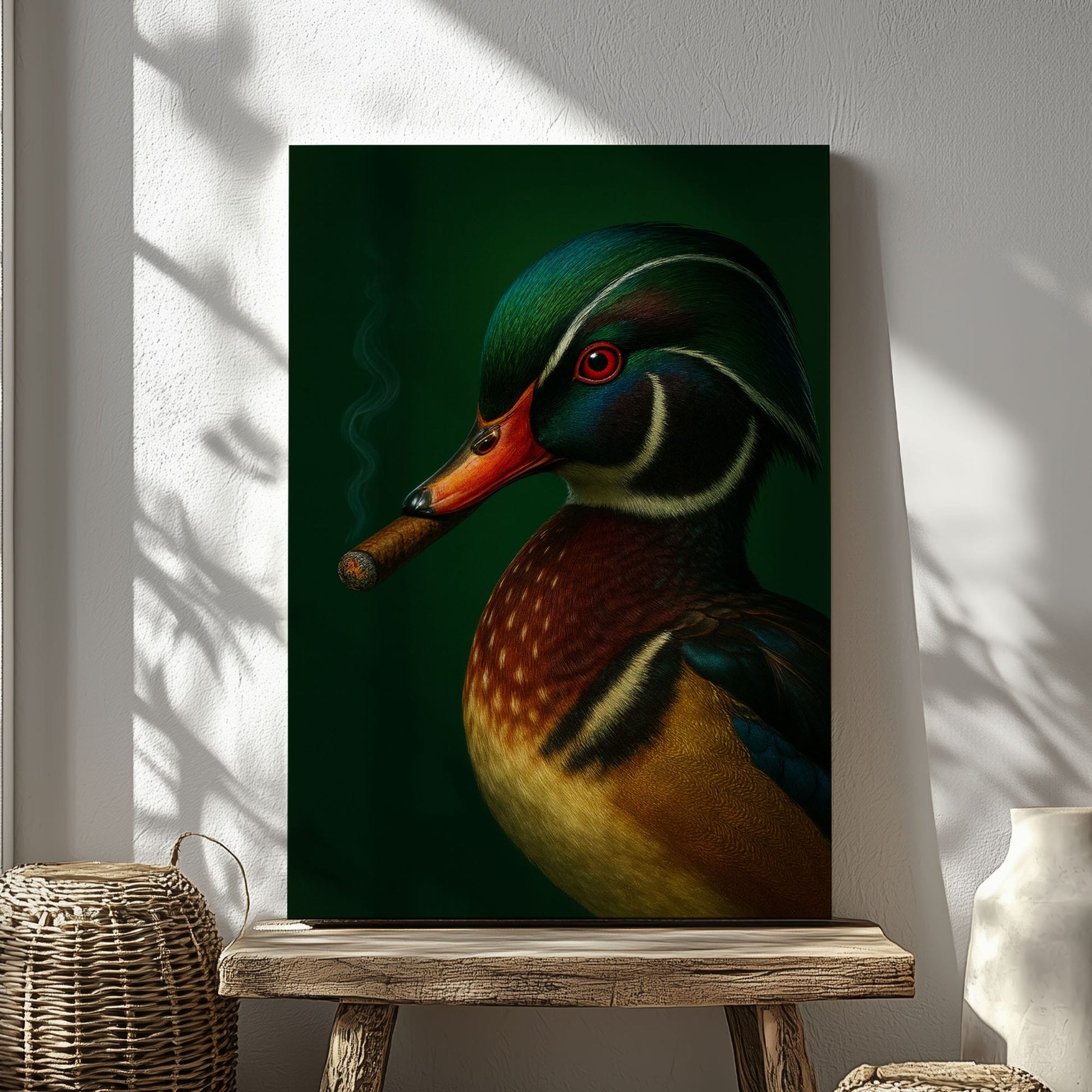 Mallard Duck Smoking Cigar Canvas Wall Art