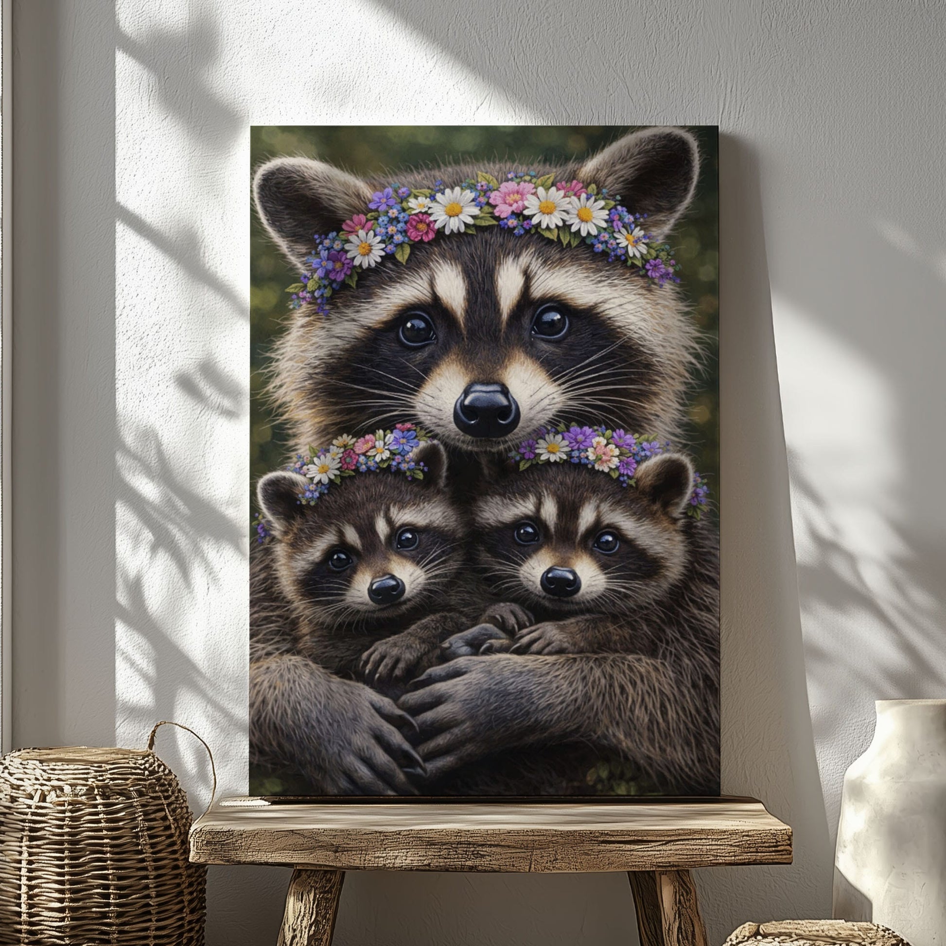 Mother Raccoon Family Love Wall Art Gift for Hunters Cabin Decor