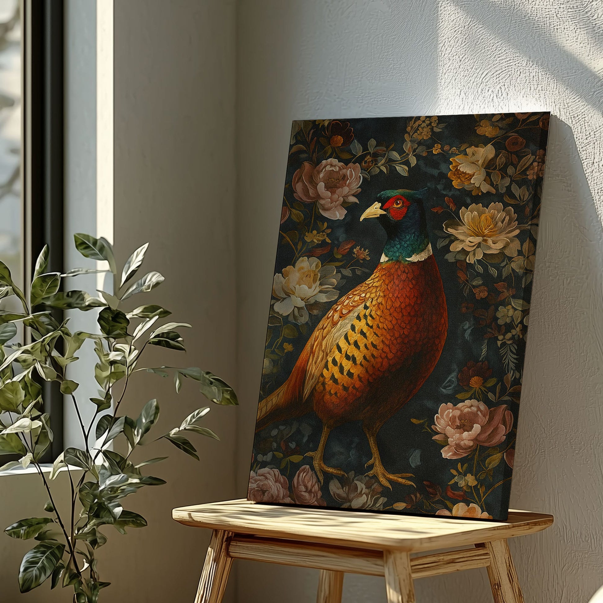 Pheasant Bird Painting Canvas Floral Vintage Wall Art Gift For Hunt