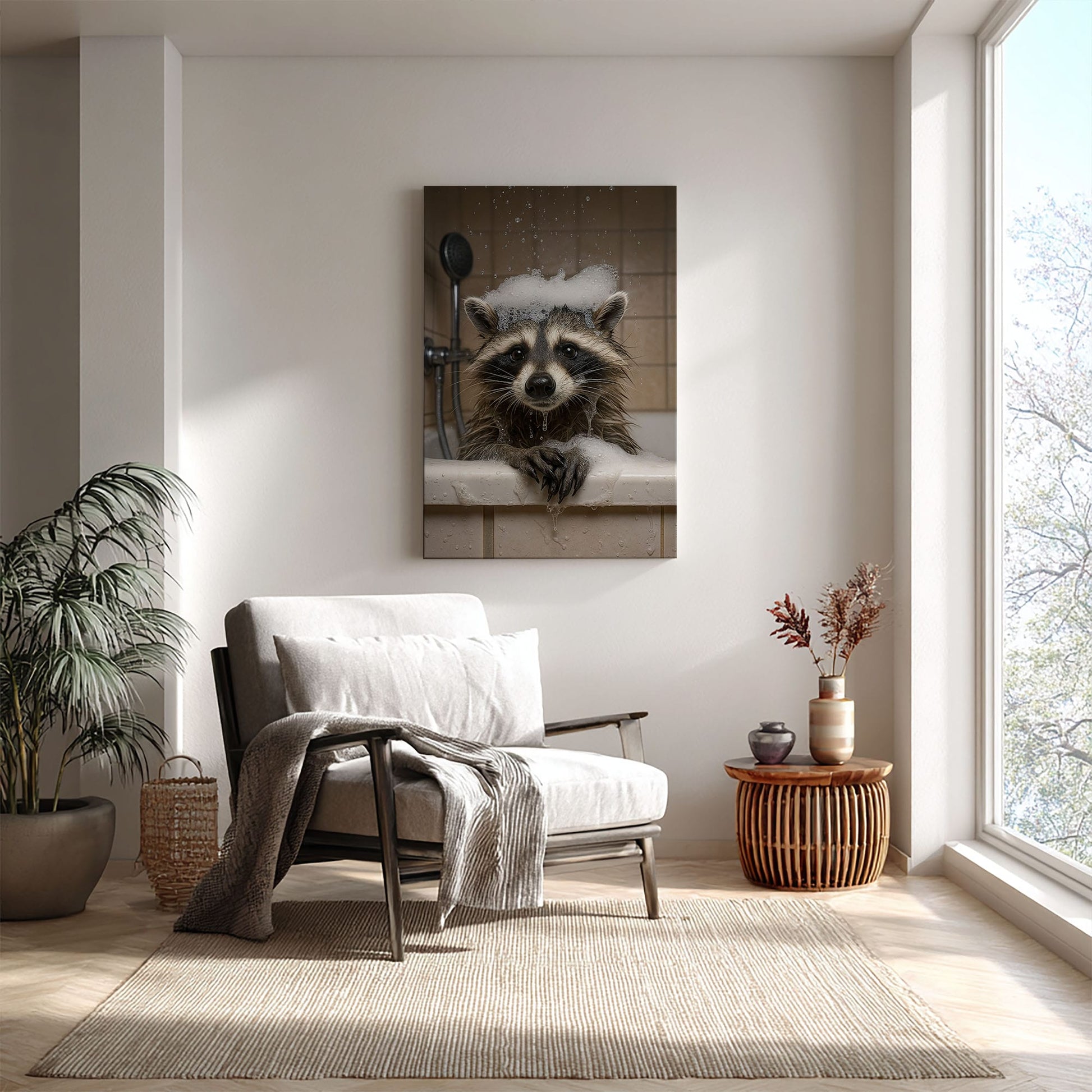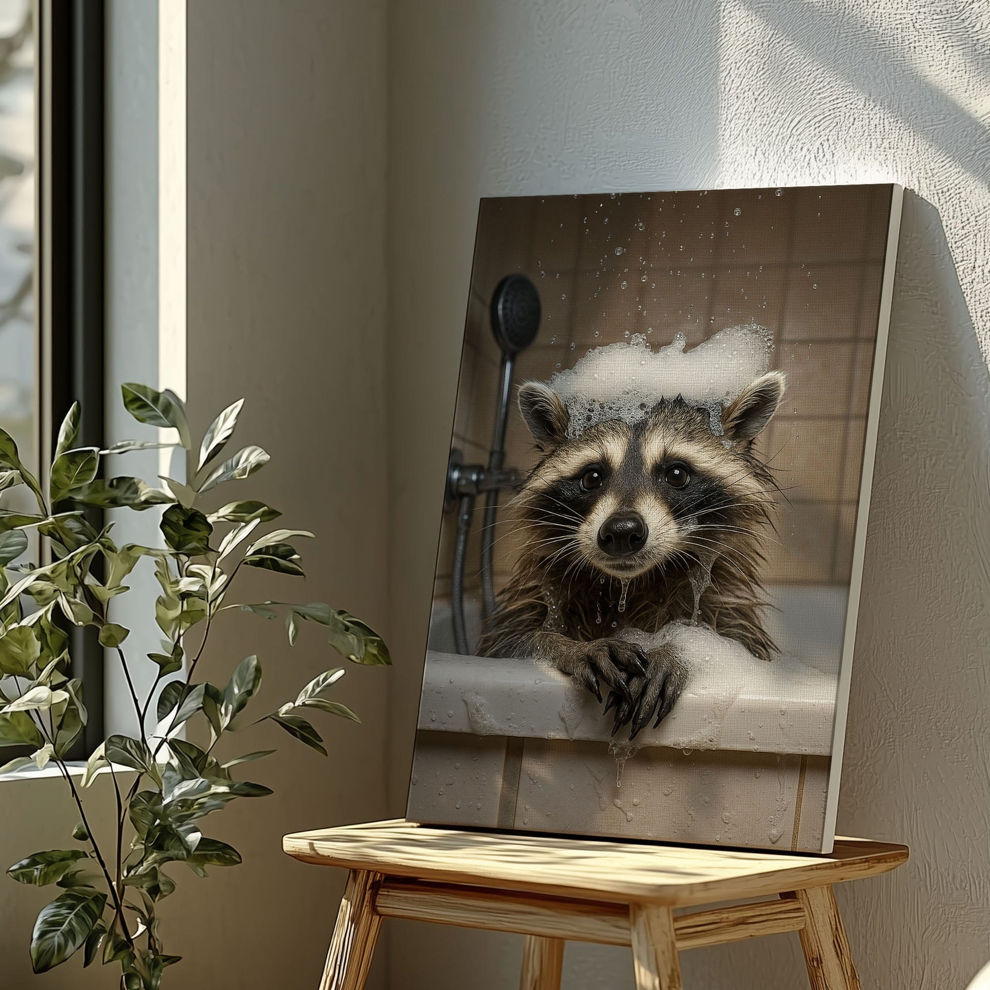 Raccoon Bubble Bath Canvas – Funny Bathroom Wall Art for Hunters