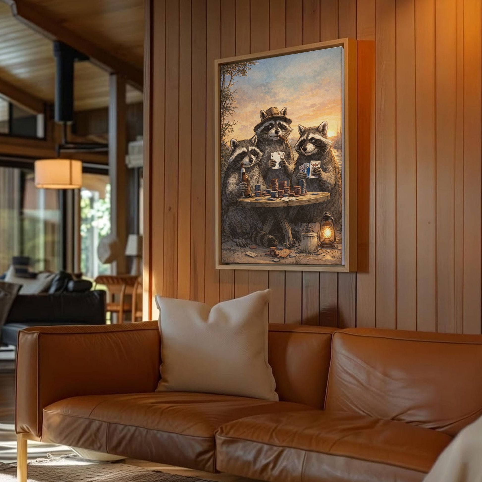 Raccoon Poker Night Beer Cigar Wall Art Gift for Hunters Cabin Decor