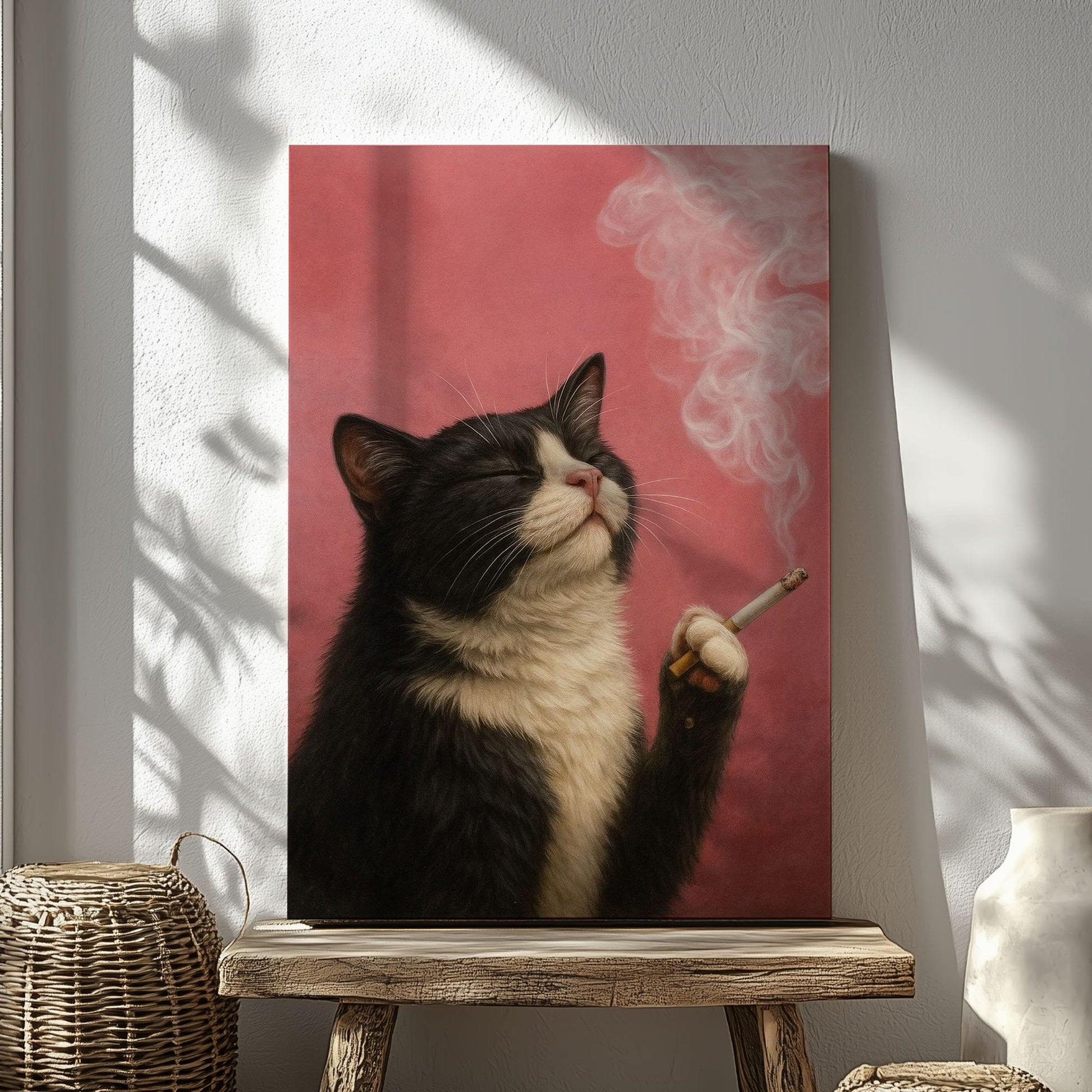 Smoking Cat Canvas Funny Retro Cat Wall Art