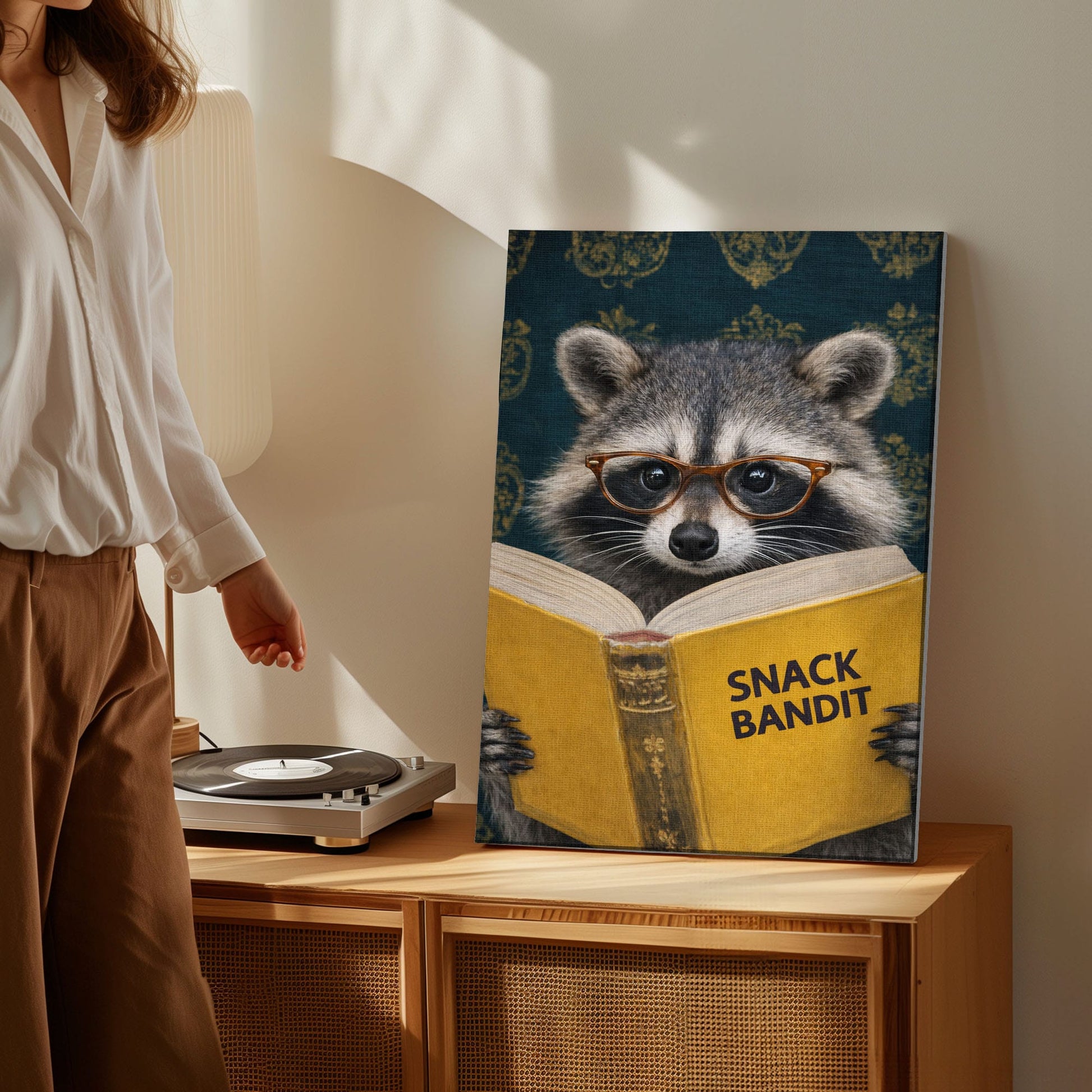 Snack Bandit Raccoon Wall Art Funny Reading Raccoon Canvas Decor