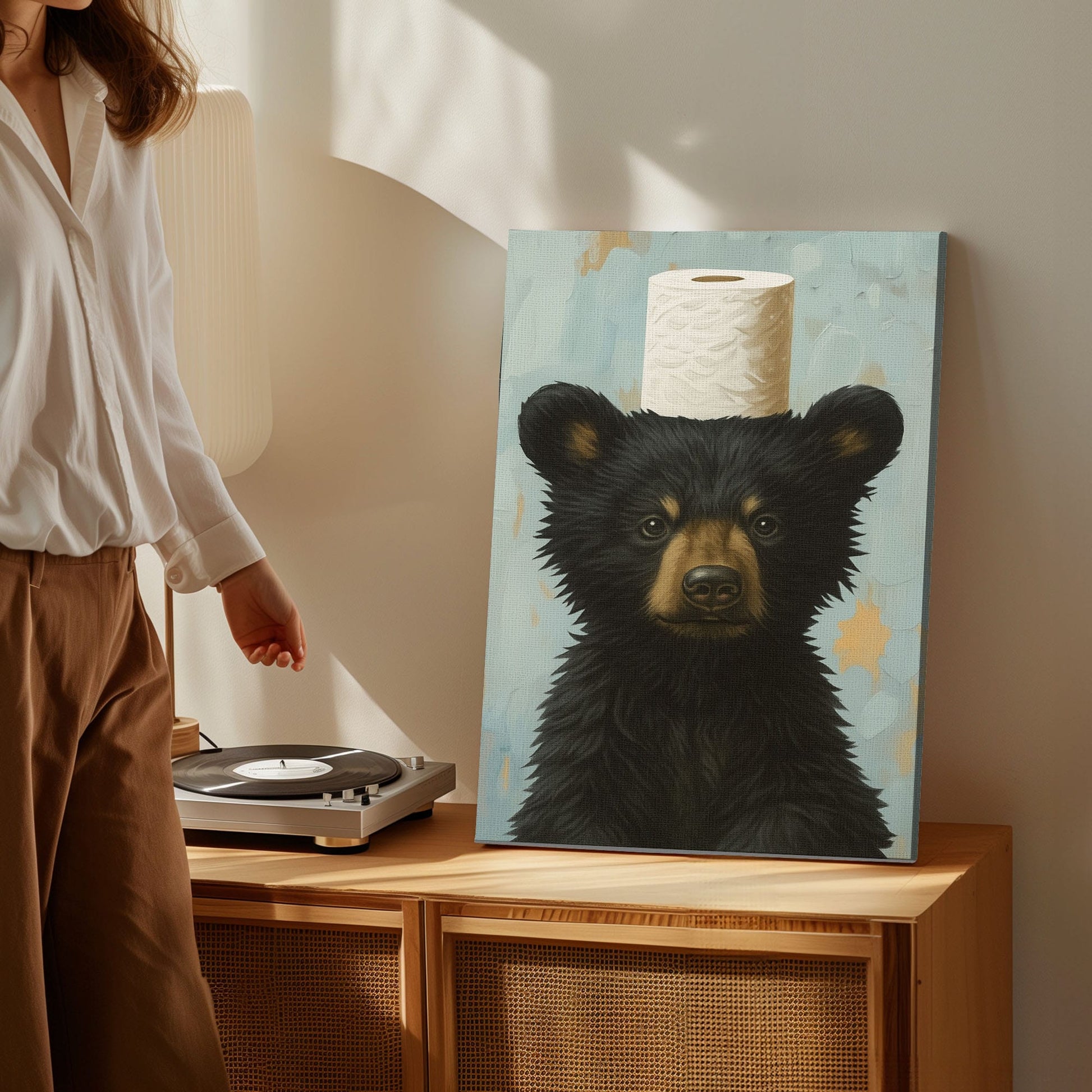Toilet Paper Bear Canvas funny Bathroom Wall Art