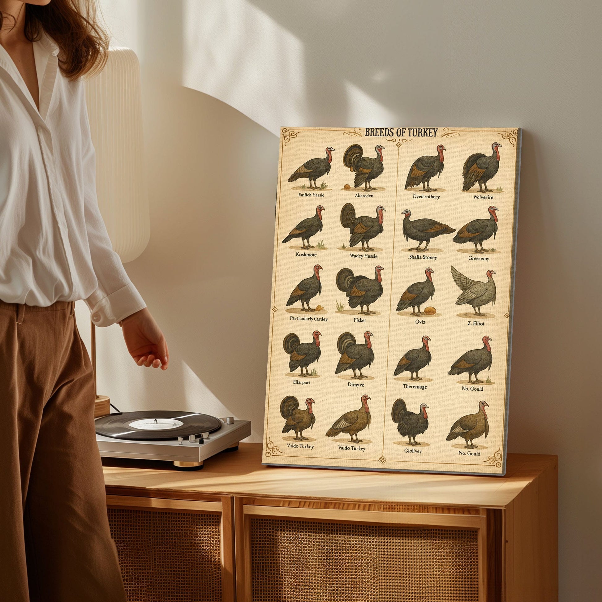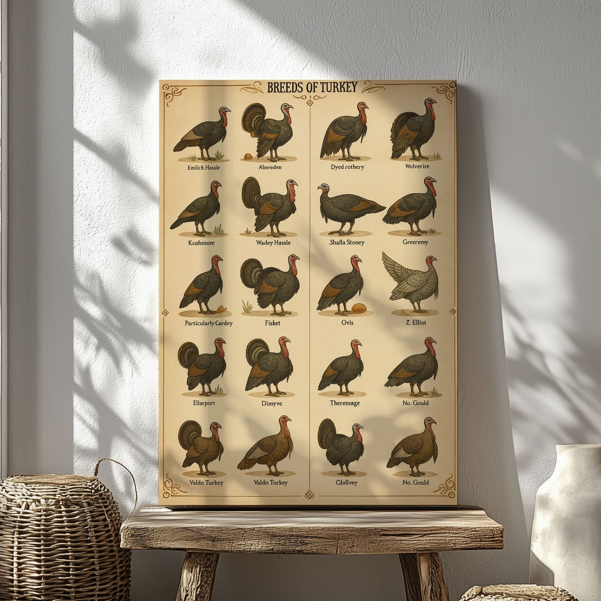 Vintage Turkey Breeds Chart Canvas Antique Poultry Wall Art