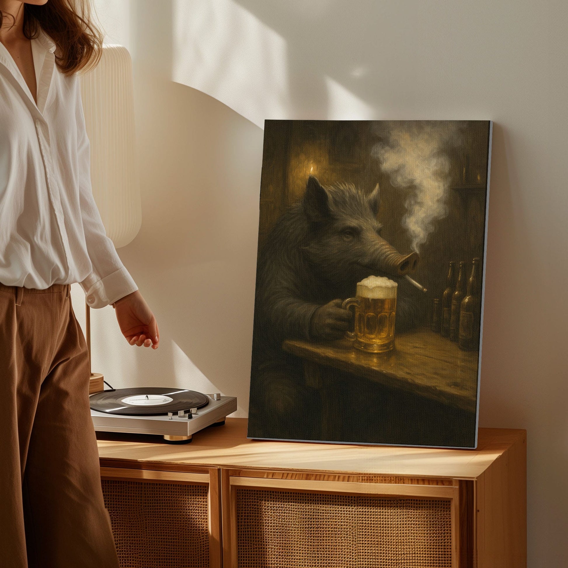 Wild Boar Bar Art – Rustic Cabin Wall Decor for Hunters