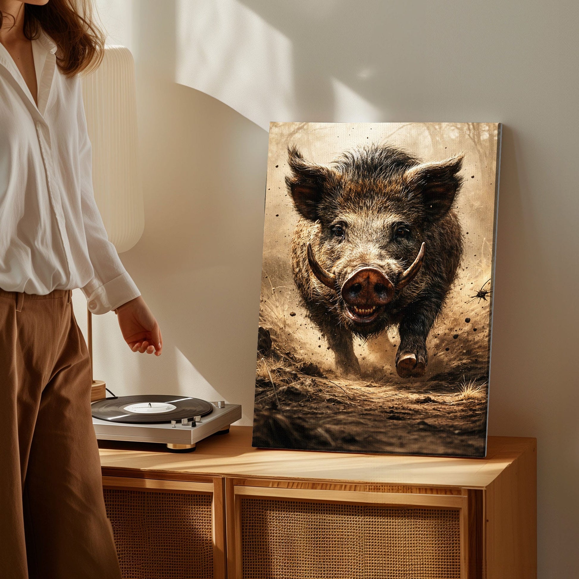 Wild Boar Hunting Canvas Wall Ar Gift for Hunters Cabin Decor